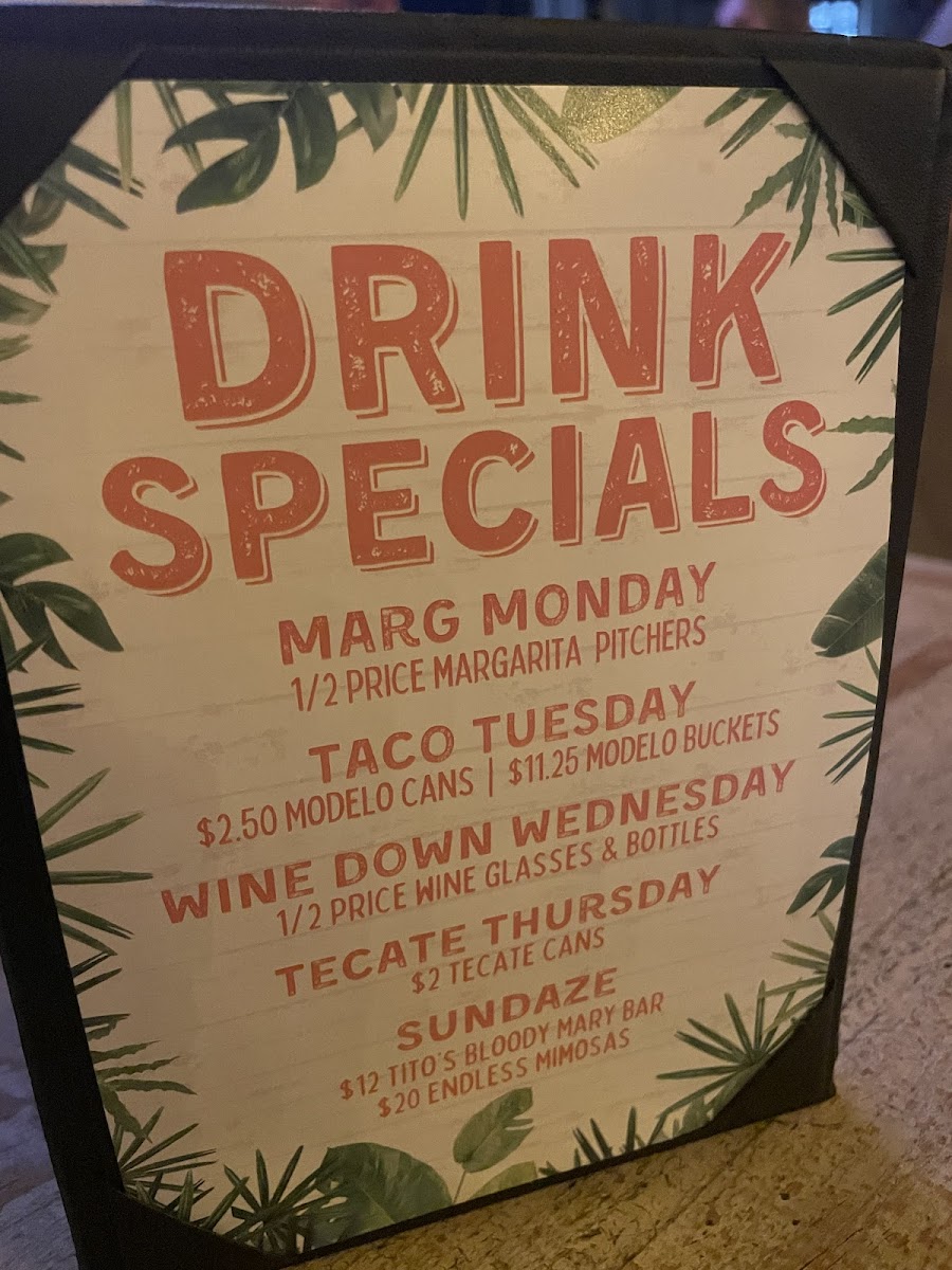 BackStage Lounge at SouthBound Menu